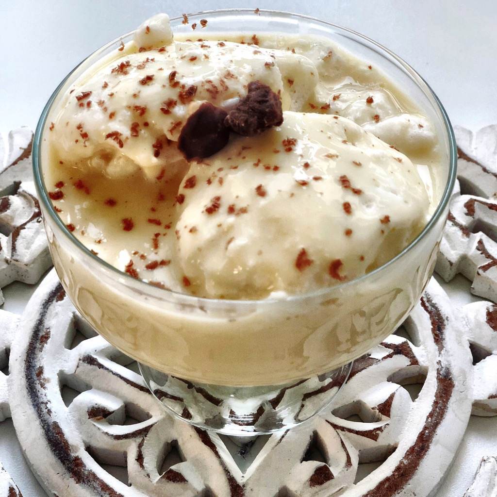 Il ador! Cand simt crema de lapte pufoasa, dulce si patrunsa de aroma puternica de vanilie, care contrasteaza cu galustele aerare, din spuma de albus, nu ma pot opri! L-as manca încontinuu. Il ador din copilarie si inca il savurez nebunește.